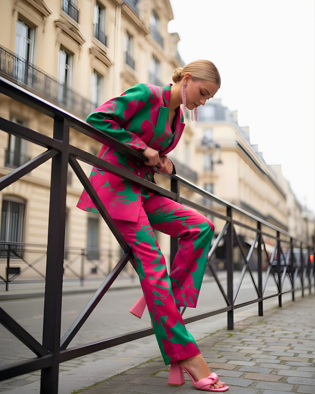 Step into sophistication with our floral print blazer paired with a waistcoat underneath and straight pants. This ensemble offers endless styling possibilities, ensuring you can effortlessly transition from day to night with elegance.