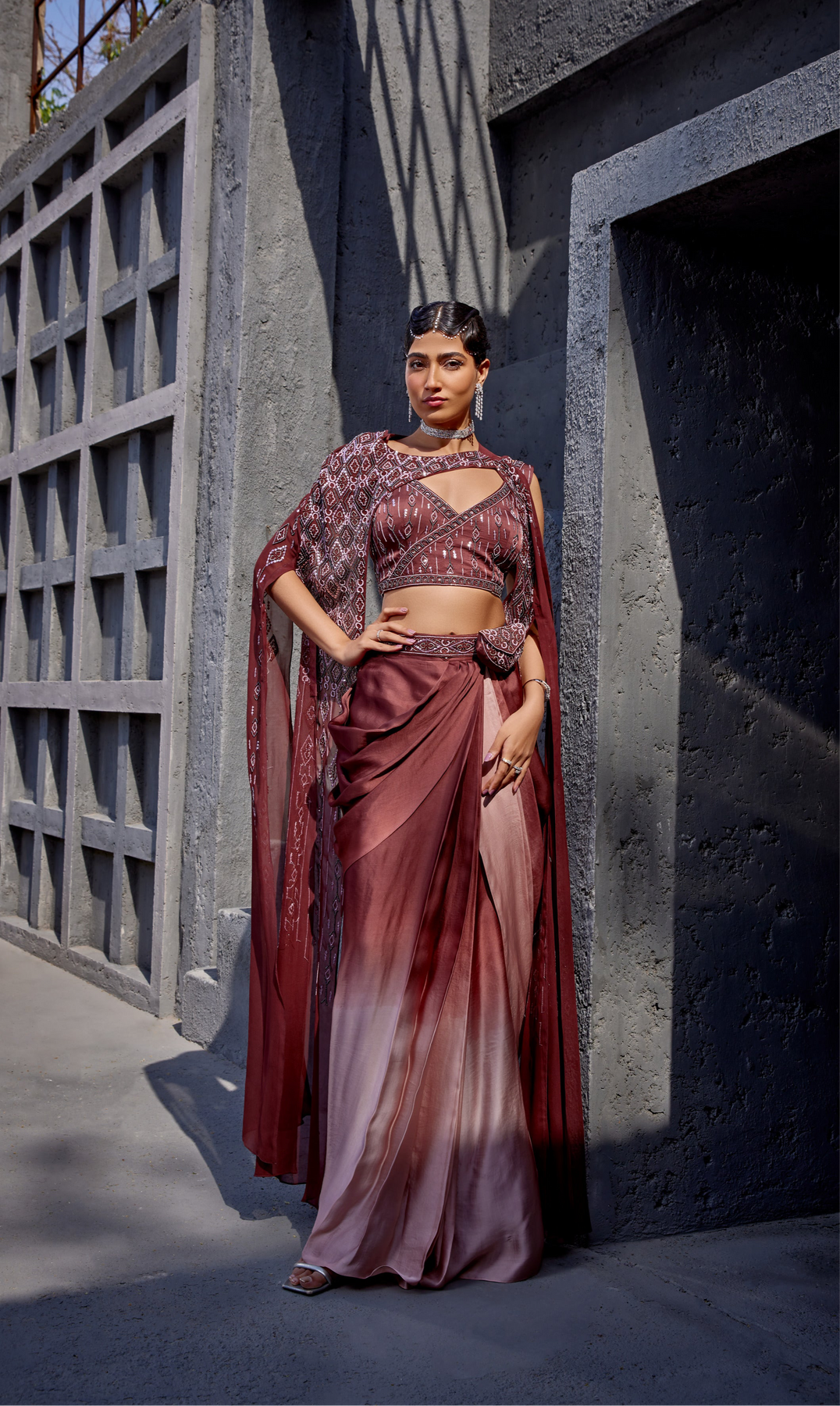 (Cape: 60 inches, Choli: 14.5 inches, Skirt: 45 inches, Belt and Bag)