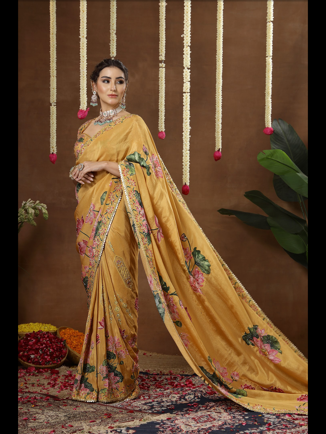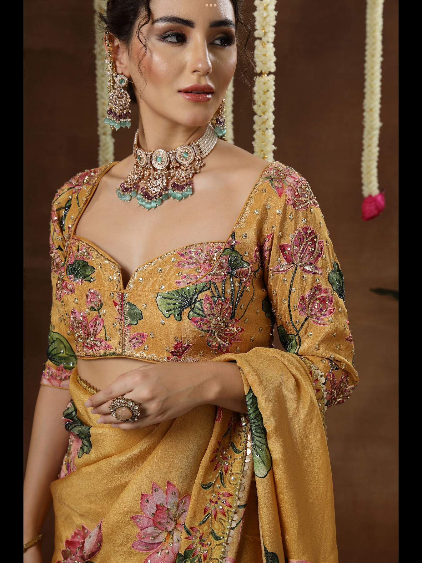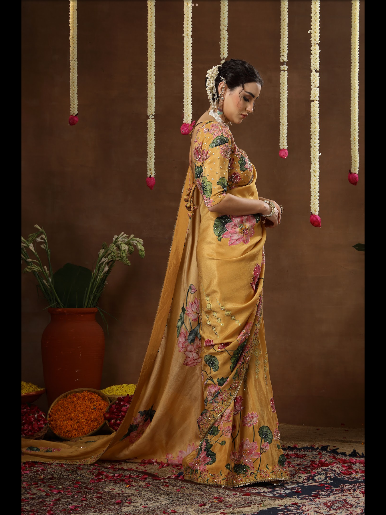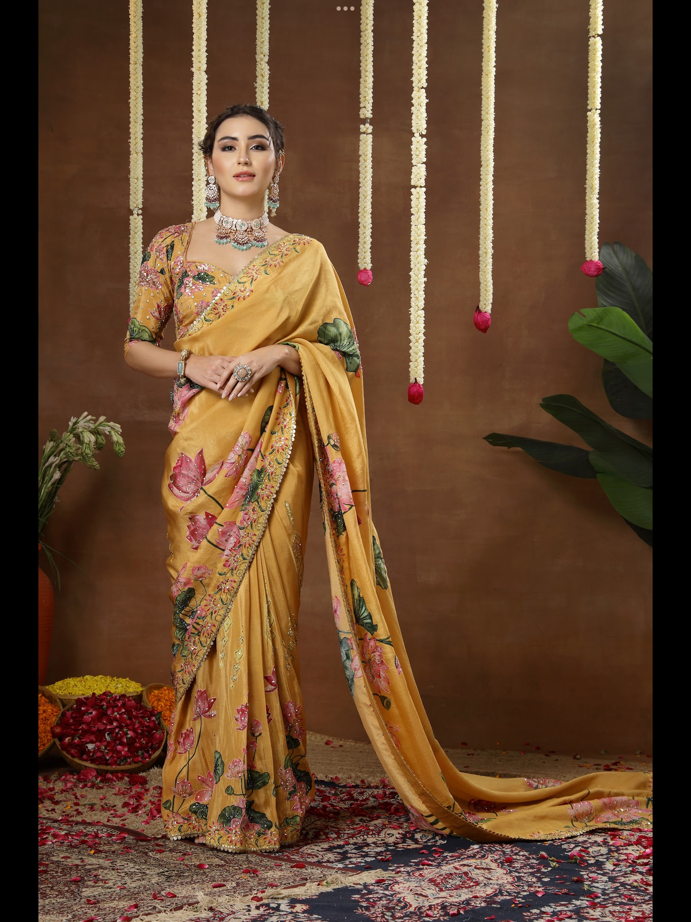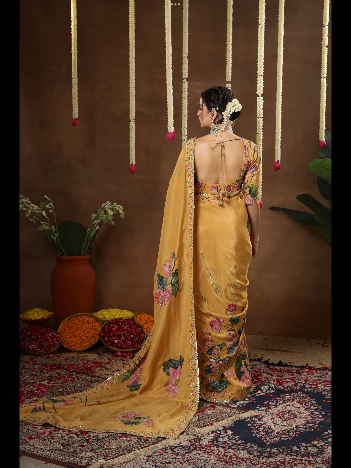 A pre-draped saree styled with an elegant, contemporary blouse. The harmony between the base colour and motif tones enhances the overall aesthetic. Featuring detailed hand embroidery across both the saree and blouse, this ensemble offers a refined finish while remaining incredibly easy to slip into.